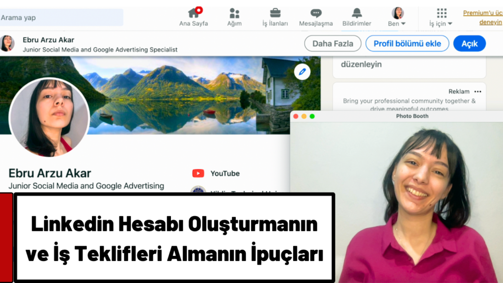 Merhaba, Ben Ebru Arzu Akar. Kanalımda her konuda bilgilendirici içerikler paylaşıyorum. İş dünyasının en güçlü profesyonel ağı olan LinkedIn, iş arayanlar ve işverenler için kritik bir platformdur. LinkedIn’i etkili bir şekilde kullanmak, kariyerinizi ilerletmek ve iş teklifleri almak için büyük bir fırsat sunar. Ancak, etkili bir şekilde faydalanmak için bazı önemli ipuçlarını bilmek önemlidir. Bu blog yazımda, LinkedIn hesabı oluşturmanın … Linkedin Hesabı Oluşturmanın ve İş Teklifleri Almanın İpuçları! okumayı sürdür